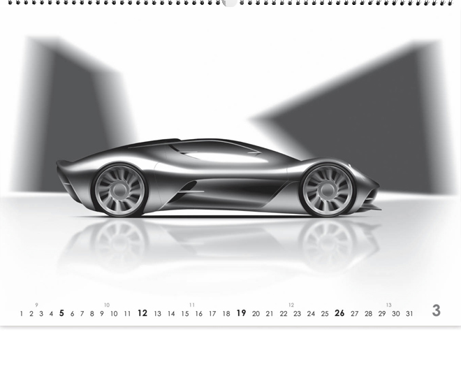 Z izjemo dveh izdaj, so koledarji ALPRA DESIGN ves čas zvesti globalno edinstveni tematiki - predstavljanju vizij nevtralnih avtomobilov prihodnosti.